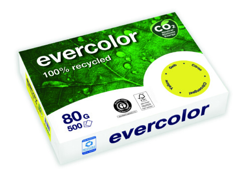 Warum nicht mehr Farbe in Ihr Ablagesystem oder Ihre Präsentationen bringen ? Evercolor ist ein farbiges Recyclingpapier, mit dem Sie Ihrem Ablagesystem eine originelle Note verleihen können. Damit steigern Sie die Produktivität und verbessern Ihre Kundenkommunikation. Evercolor ist in 6 Pastell- und 4 kräftigen Farbtönen erhältlich und wird in A4-Formaten in einer Riesverpackung aus 100% Papier mit Feuchtigkeitssperre, ohne Polyethylenbeschichtung geliefert.